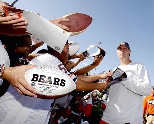 This one wasn't just about Cutler though. It was the third preseason game, which as any knowledgable NFL fan knows is the most important of the preseason, and the rest of the team shined, too. The defense gave up three early points, but after that, clamped down and put pressure on former mate Kyle Orton. The key to that was Tommie Harris, who looks to be healthy, which will be a key for the sesaon. One guy that doesn't know if he'll be ready for Green Bay is Charles Tillman. Not so sure this is what I wanted to hear.
