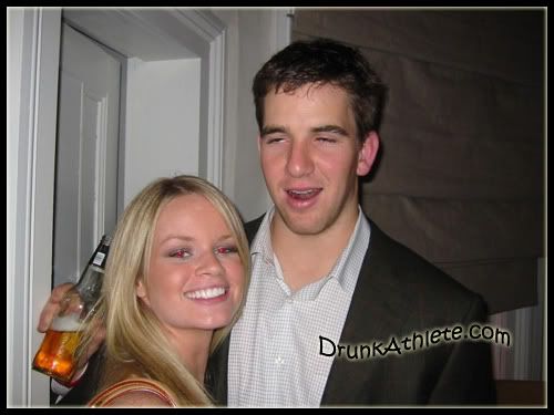 Yesterday's post of the Matthew Stafford pictures got me a couple E-mails and comments around the office of people I know that introduced me to maybe my new fave Web site, www.drunkathlete.com. It catches athletes in their finest moments. Here's everyone's favore New York QB, Eli Manning, looking great during a night out on the town. Imagine after he signs this hefty new contract!