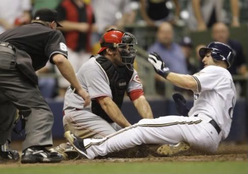 What followed was a great rally (probably the best all year by the Brewers). It did tie the game to force extras as Mike Cameron flew out to left and Ryan Braun was dead to rights at the plate.
