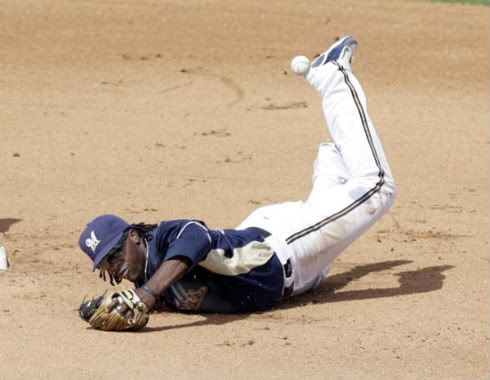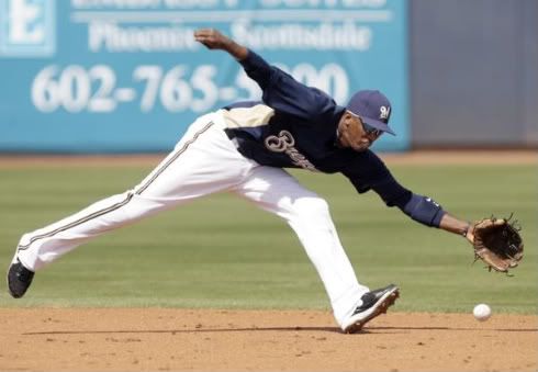 Let's start with the new pieces. At shortstop the Brewers dealt J.J. Hardy (AJ is still crushed) to the Twins in favor of handing over the keys to Alcides Escobar. After watching him finish the season and what he did in the winter in his native Columbia (he won the winter league batting title). He's continued that in the spring by hitting .321 with a homer and nine RBI. More impressive has been his defense. Had a brief conversation with Dennis Semrau (his first shoutout on the Way!) and he called Escobar the vacuum cleaner. The guy has amazing range.