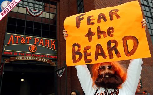 Yes, I stole this pic from SI.com, but hey, it was too good and I couldn't pass it up. It seems all of San Fran is in love with these dyed beards (although no one will admit it's dyed) that have propelled the Giants just three wins from the World Series title. Cliff Lee got rocked last night after looking untouchable to start the game. It was rather shocking to me and the people who Tweets I was reading on Twitter last night during the game.
