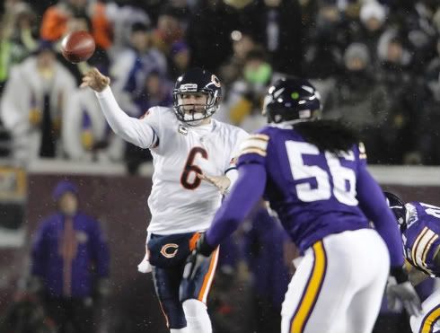 Maybe more important than Jay and one of the reasons he has turned it on, has been the offensive line. Since the bye week in Week 9, the Bears have come together and shown the ability to run the ball. That has taken a lot of pressure off Jay while Matt Forte and Chester Taylor have shouldered more and more of the offensive load. Those five guys have put it together enough to keep Jay upright enough to be effective in the pocket.