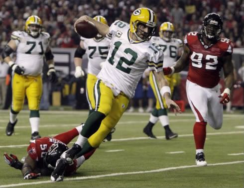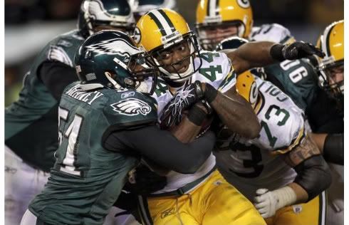 2. The running game. If you would have told me midseason that 25 carries for 66 yards by your main running back against the #1 seed in the NFC on the road would be enough to carry a dominant passing attack and earn an upset…I would have asked for whatever you were smoking. But the resurgence of the ground game with Brandon Jackson, and more recently James Starks, has kept defenses honest and allowed Aaron Rodgers to pick opponents apart. It doesn’t matter if the Bears held offenses to an average of 90 yards rushing during the regular season. They at least now have to account for somebody running the ball effectively.