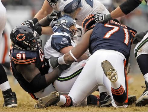 3. Get pressure with the front four. Speaking of the defensive line, those front four of mainly Julius Peppers, Tommie Harris, Anthony Adams and Israel Idonoje need to establish pressure on Aaron Rodgers, but with a slight purpose. Consider this an extension of limiting the run game in containing Rodgers and not letting him use his feet to create. Keeping the pocket from moving will set things up for the line and help the secondary.