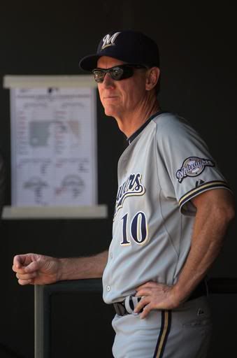 While the talk around the Brewers circulating on this off day is who deserves the MVP more Ryan Braun or Prince Fielder (on both Brewers.com and SI.com), there's another award a member of the Brewers should be in discussions for. That man is Ron Roenicke, who has a great case for National League Manager of the Year in this, is rookie campaign as skipper of a Major League team.